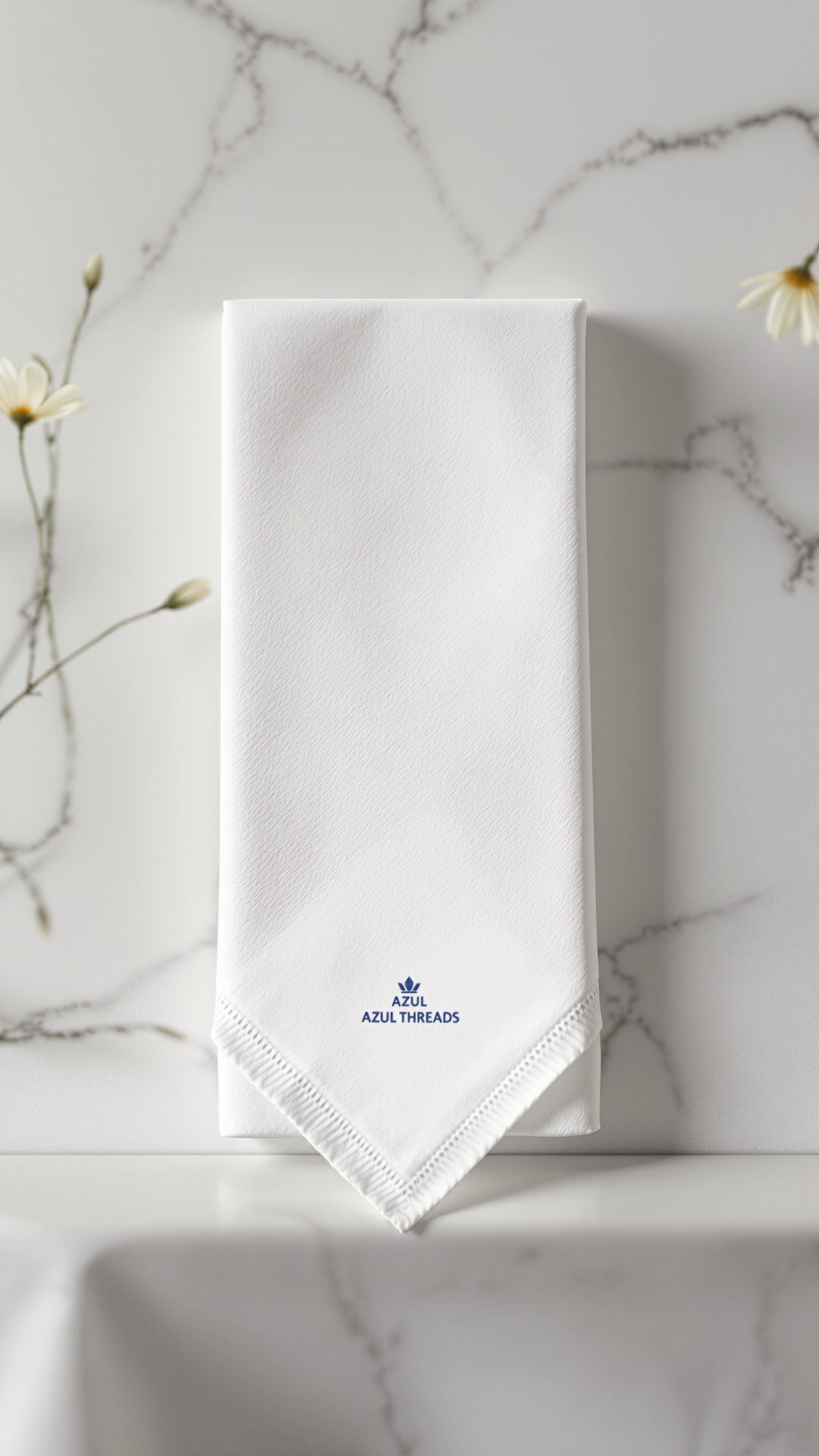 + Free ShippingElevate your dining presentation with the crisp and contemporary style of our AZUL THREADS Fringed White Table Napkins. Crafted from a smooth, high-quality white fabric, this napkin is folded to showcase a delicate frayed or fringed edge detail, which adds a subtle, modern texture to the classic design. The blue printed logo and text “AZUL THREADS” are prominently featured, providing a distinct brand mark that complements the clean aesthetic.