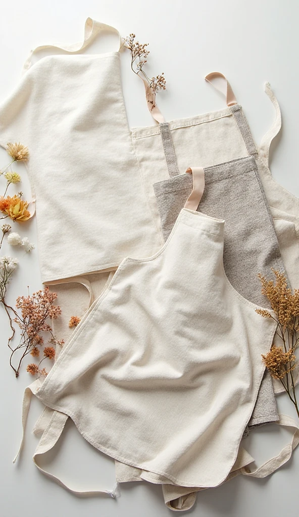 Embrace rustic elegance in your kitchen with our Artisanal Chef Aprons and Kitchen Linen Collection. This beautiful selection of aprons features a mix of natural, unbleached cotton and soft linen, showcased in warm, inviting tones like creamy off-white and heathered grey-beige. The variety of styles—from full-coverage bib aprons to cross-back designs—offers both comfortable wear and durable protection against spills and splatters while you cook or craft. The simple, timeless construction and high-quality fabric make these aprons a charming and practical addition to any modern farmhouse or minimalist kitchen.