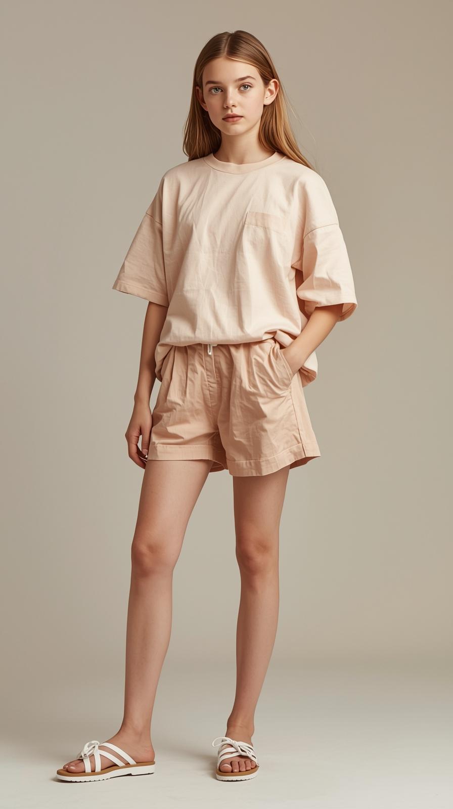 The appeal of this set lies in its effortless versatility and soft coloring. The Pleated Shorts offer a clean, tailored yet relaxed fit with an easy drawstring waist, perfect for all-day wear. Whether she’s relaxing at home, running errands, or meeting friends, this set provides a polished, yet completely comfortable, look. Wear the pieces together for a cohesive tonal outfit, or mix and match them with bright colors and denim for endless styling possibilities.