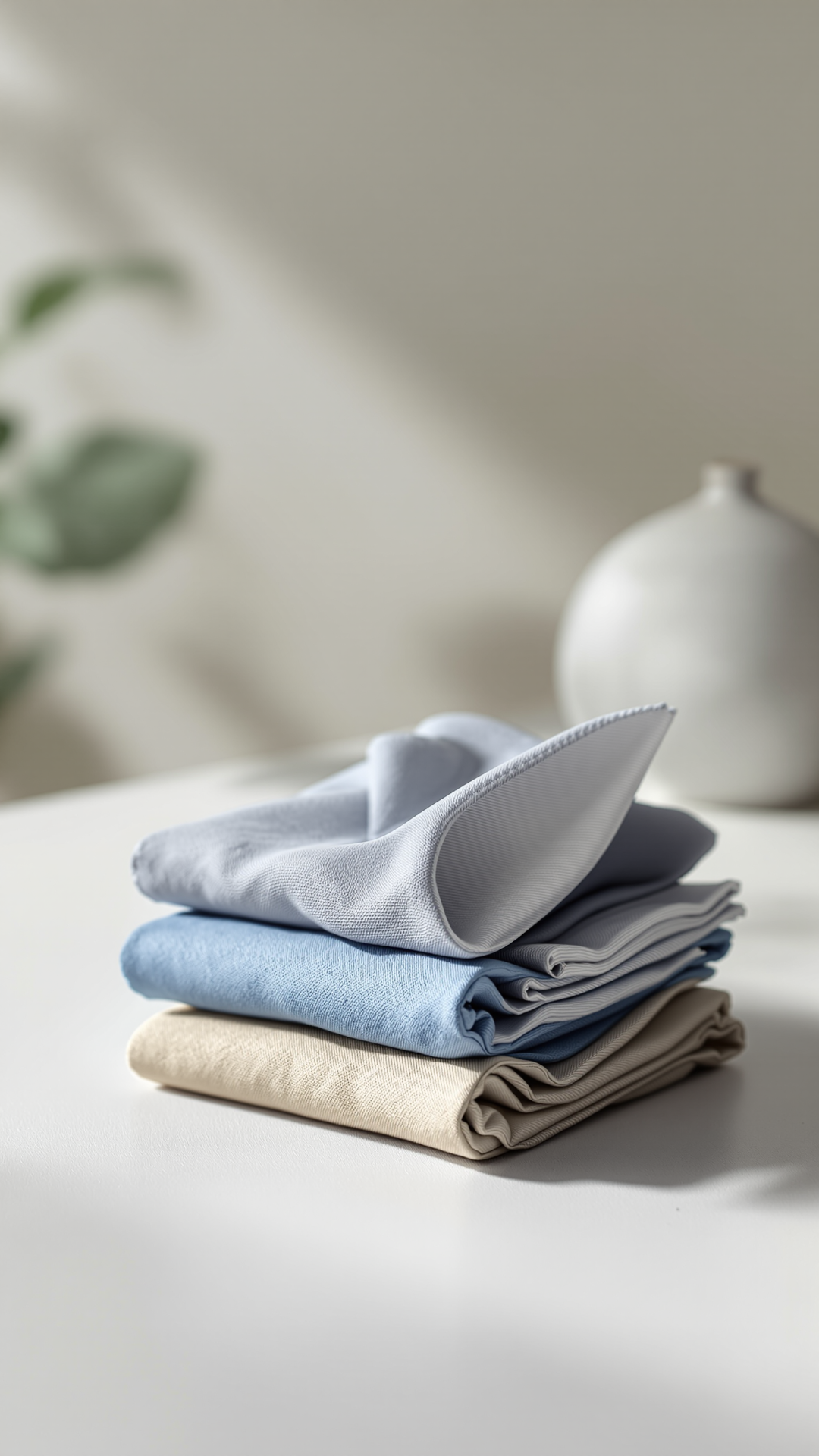 The gentle curves of the top napkin and the layered colors create an aesthetically pleasing display, making these items perfect for decorative purposes as well as functional use. As essential kitchen accessories for entertaining, these napkins bring a touch of modern, calm sophistication to any meal. Their durable construction makes them ideal for repeated use, offering an eco-friendly and stylish alternative to paper napkins.