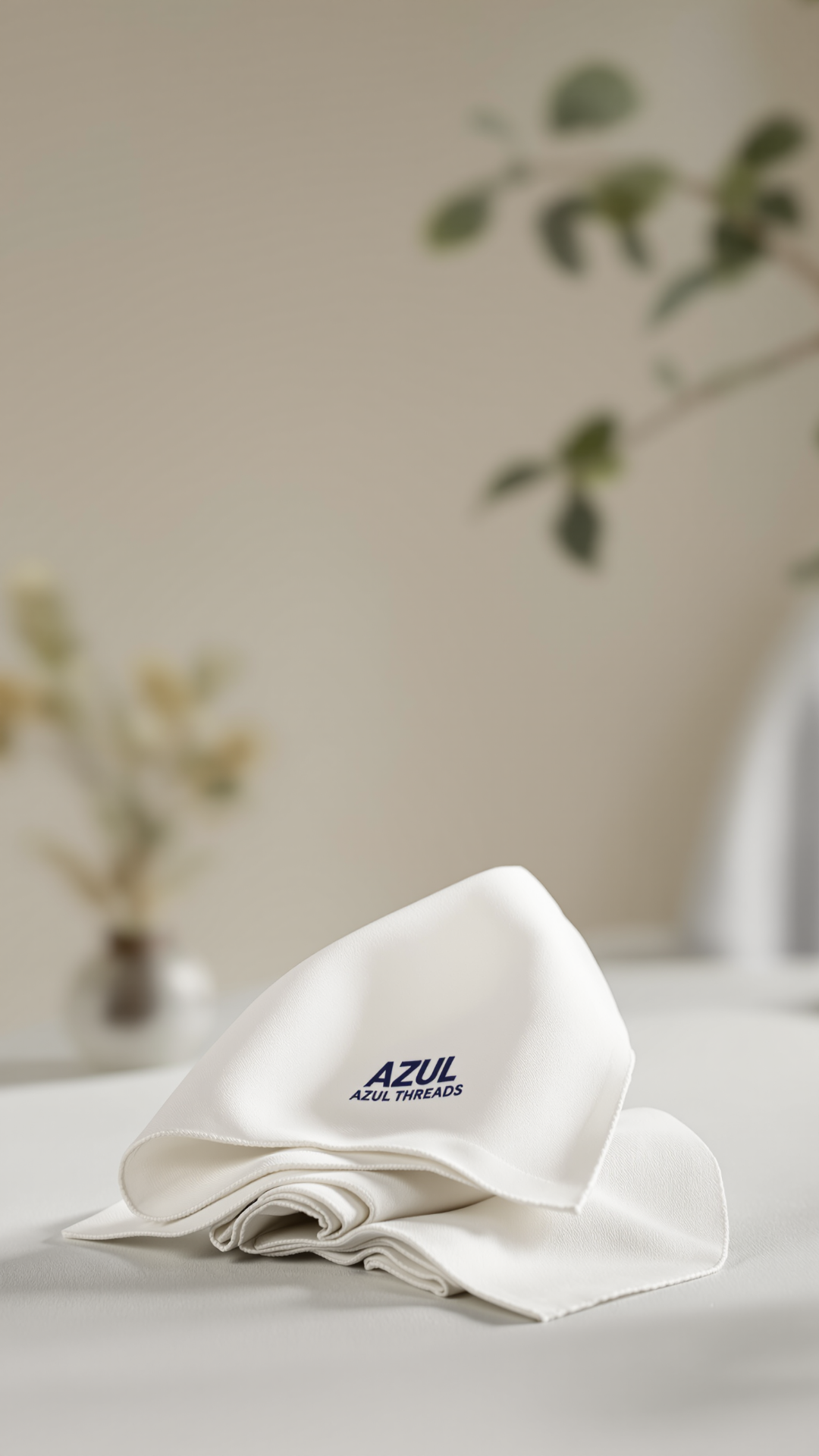 + Free ShippingAchieve a look of relaxed, elegant dining with our AZUL THREADS Ivory Table Napkins. This lovely piece of dining linen is crafted from a smooth, luxurious fabric in a soft creamy white or light ivory color, providing a warm and inviting feel to your place setting. The napkin is intentionally styled with a natural, soft fold, showcasing the material’s excellent drape and refined texture. A small, crisp blue printed logo with the text “AZUL AZUL THREADS” adds a subtle, high-quality brand touch to the minimalist design.