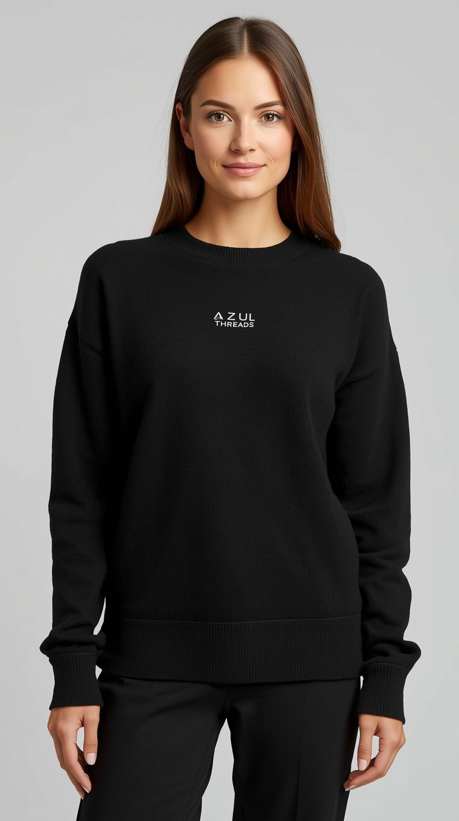 The perfect foundational piece for any wardrobe, this Azul Threads sweater offers a blend of style and practicality. Knit from a soft, mid-weight yarn, it provides comfortable warmth without feeling bulky, making it ideal for effortless layering. Its clean lines and classic fit ensure it looks equally refined over a collared shirt or worn casually with denim.